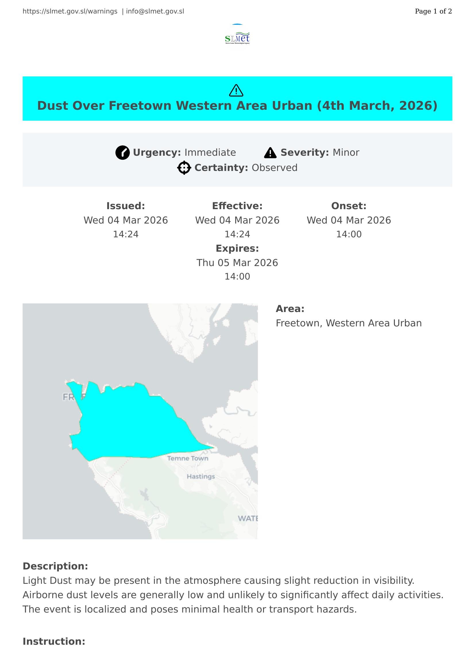 Dust Over Freetown Western Area Urban (4th March, 2026)